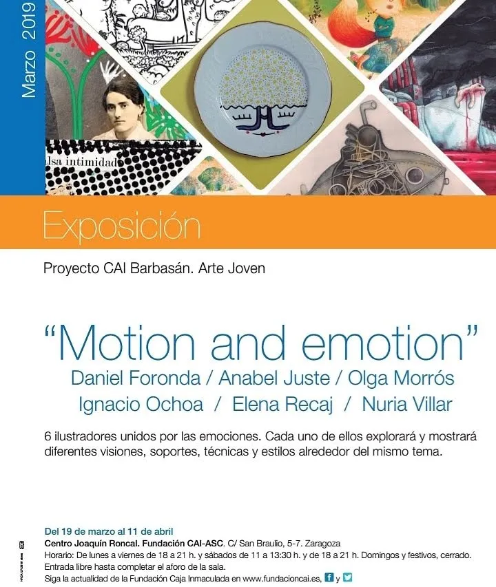En la primera línea, para darle forma tangible a conceptos tan abstractos he creado micro poemas ilustrados; mediante técnicas mixtas sobre lienzo y papel; buscando el movimiento o reacción al plasmar por escrito pensamientos, emociones sentidas al interactuar con otras personas y al usar el color junto a la palabra para generar nuevas emociones. El resultado podría definirse como un emocionario íntimo que una vez creada la obra de algún modo deja de pertenecerme y pasa de tener un carácter individual e íntimo a uno global y compartido… Emociones en movimiento.
